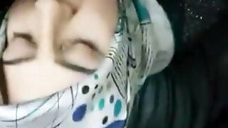 Muslim ponytailed hijab doll kisses and rides her bf in public