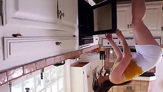 Twin StepSisters pee on the floor and smashed in bootie in dad kitchen