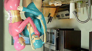 I'm in the kitchen washing the dishes and my dad's gf arrives to entice me and touch me, all molten and sexy