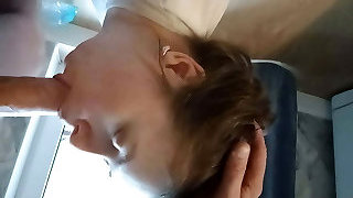 Morning blowjob, cum in throat