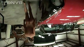 This tall babe loves old school cars and she is a total exhibitionist
