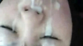 Slut gives sucky-sucky and takes facial jizz flow with funny pig nose on