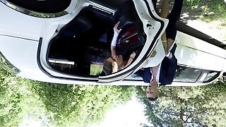 Blonde beauty gets facial cumshot after anal thrilled doggystyle outdoor