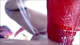 Pee fetish babe soaks through her panties