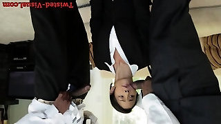 Hardcore 3some with asian schoolgirl vibed upskirt