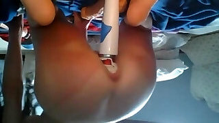 Colombian college slut who loves anal inserts two vibrators in her anus while she drains her pussy with her frigs