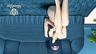 pummeling her pussy with a thick cucumber, until she ejaculates deliciously, she is a superslut