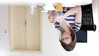 Sweet blond ravaged in face, eats ass, and fed jizz from feet