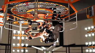 Fuck machine & crazy lovemaking. Male android plays with a kinky girl in restraints