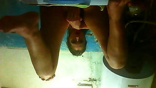 Cruel dildo fuck machine in kitchen