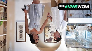 Stepson caught half naked mummy in the kitchen and fucked her boobs and deep jaws
