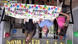 Two horny damsels get a hard cock for a birthday introduce