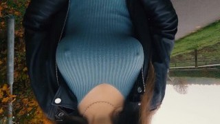 Romanian chesty bitch Honey Demon is flashing boobs in public before sex for money