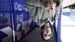 Public Agent Teach Station smoker gets her tits out