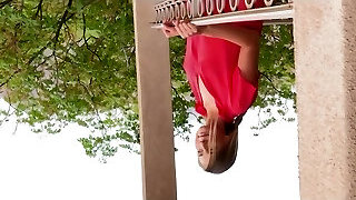 Voyeur flick with a Girl Outdoor provocating with her