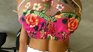 Slutty brunette Imma Hot takes off her clothes showing off her donk