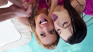 A cool blonde honey gets a double cumshot inside her mouth