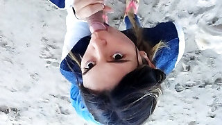 Amateur swallow cum outdoor in public