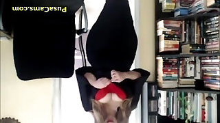 Busty Teacher in leggings strips and teases her student's dad online