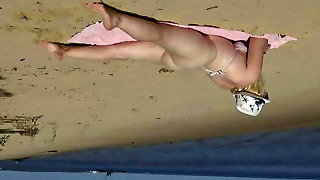 Provocative blonde amateur Staci lifts her summer dress to tease