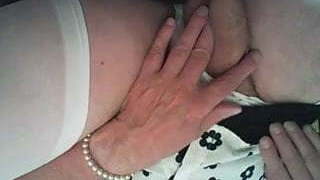 BBW in see-through panties getting her wooly honeypot fingered by her Sissy in pantyhose