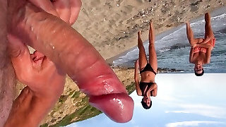 Stranger on the beach jacking off on my wife