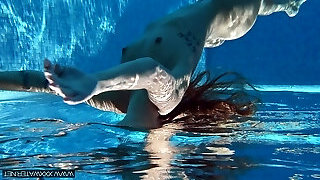 Hungarian tiny sex industry star Tiffany Tatum swimming naked