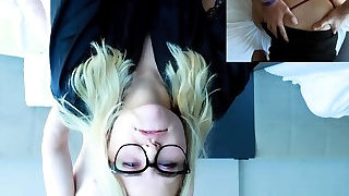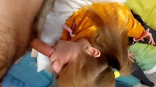 Pretty Blonde Teenage Gags On Her BF's Dick Taking It Really Deep In Her Throat