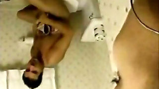 Kinky Indian mega-bitch finds a dude wanking in the bathroom so she helps him out with stout oral pleasure