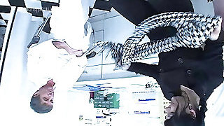 Hot petite nurse in ebony tights prescripts anal treatment with creampie