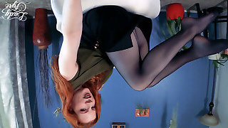 Teacher in Shiny Pantyhose and Red Heels letting me Pulverize her Legs and does an Incredible Hand Job