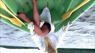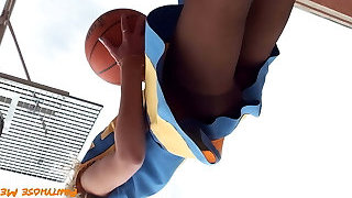 Lorine in Cheerleader Uniform and Stocking Shooting Balls and Flashing