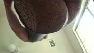 Ass Queen In Fishnets Jiggles Her Ass On The Bed In Pantyhose