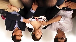 Tired chestnut haired office clerk Mami Asakura is drilled in subway train