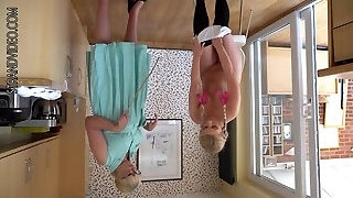 Gadget has orgasms as she ejaculations in her kitchen