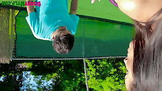 Tennis hottie Sara Luvv gags on his dick before they bang