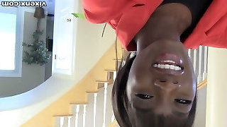 Fantastic svelte ebony real estate dealer Ana Foxxx rides white cock on top