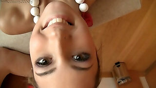 Busty Brunette Sucks and Titfucks Huge Cock with Oil