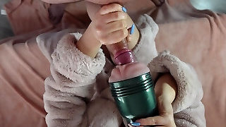 College Roommate Made Me Cum On Her Fur Robe With Fleshlight